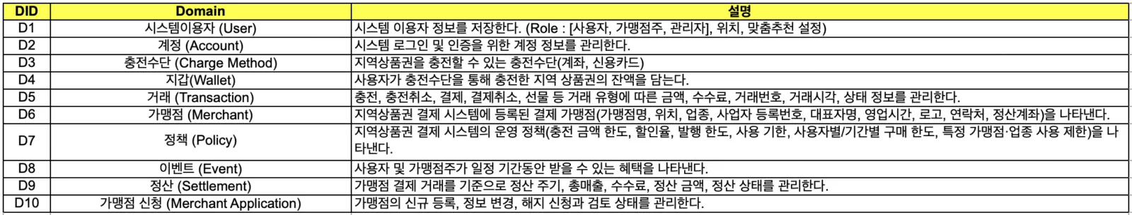 Use case들과 FDF(Fully Dressed-up Form) 산출물을 통해, 해당 시스템의 도메인(Domain)을 정의한다.